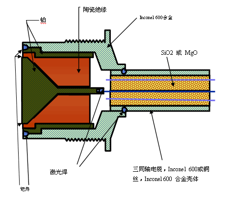 Pseudo triaxial | Ø 4 mm | Ø 6.28 mm | From 0 mm up to 10 mm | Electrode: Kovard alloy Body: Inconel® alloy 600 Mounting: thread or smooth with flange for welding |